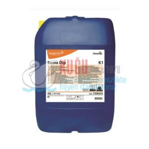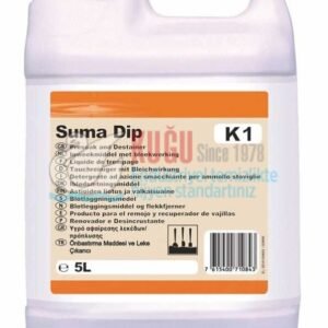 Suma Dip K1, çok lekeli ve kirli kapların bastırılması/lekelerinin giderilmesine uygun klorlu, alkali bir sıvı üründür. Bardak ve tabaklardaki inatçı