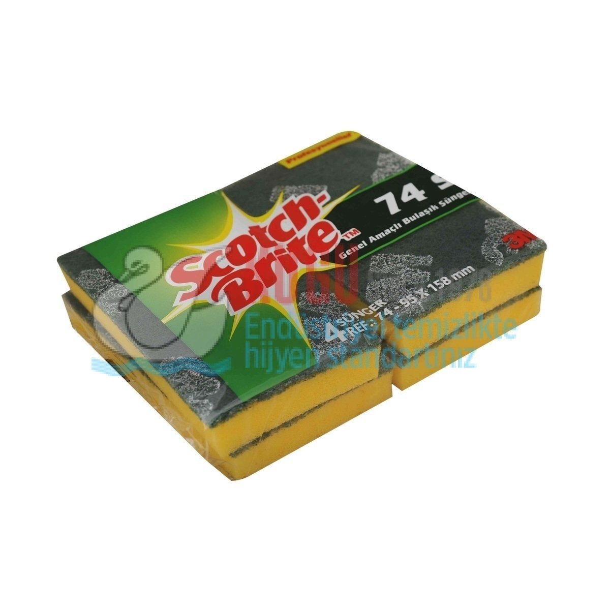 3M scotch brite 74 genel amaçlı bulaşık süngeri, çizmeden temizleyen bir temizlik ürünüdür. Sarı ve yeşil renklerden oluşan scotch brite 74’ün yeşil fiberli kısmı ovma işlemleri için, sarı renkli süngeri ise silme işlemleri için kullanılmaktadır.