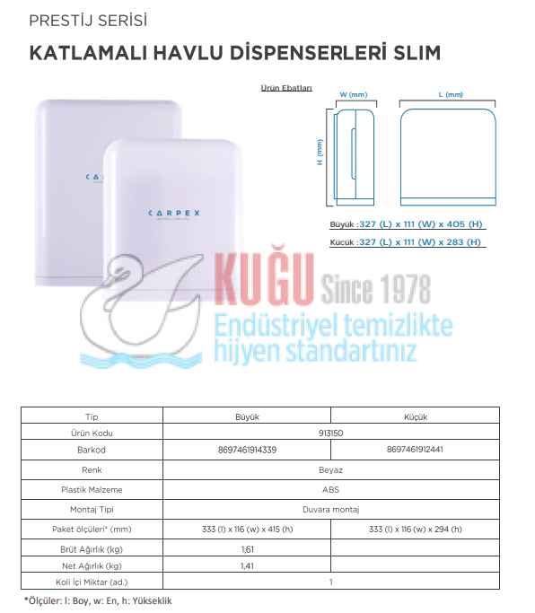 Categories Kağıt Havluluklar, Prestij Serisi, Z Katlama El Havlusu Aparatı