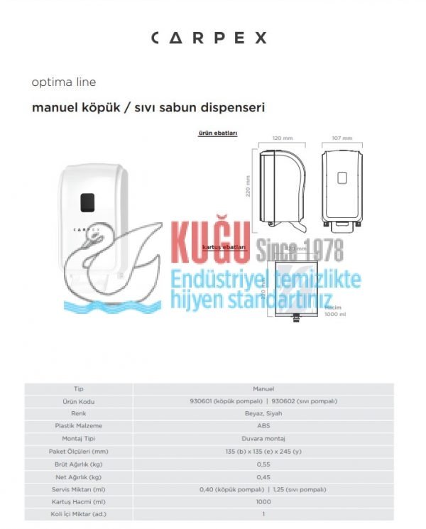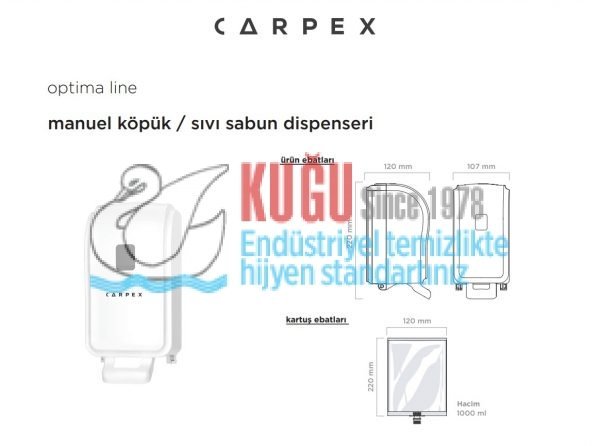 Köpük sabun, sıvı sabun, sıvı antibakteriyel ve jel kartuşlar mevcuttur.