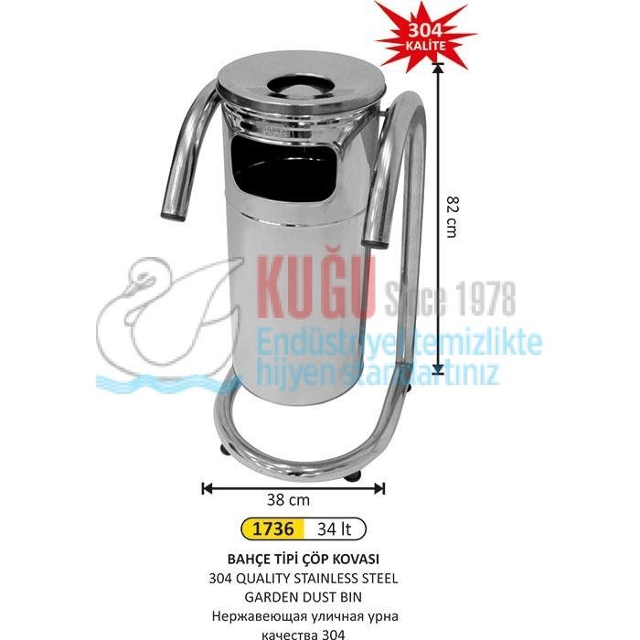 1736 34 LT BAHÇE TİPİ ÇÖP KOVASI 304 QUALITY