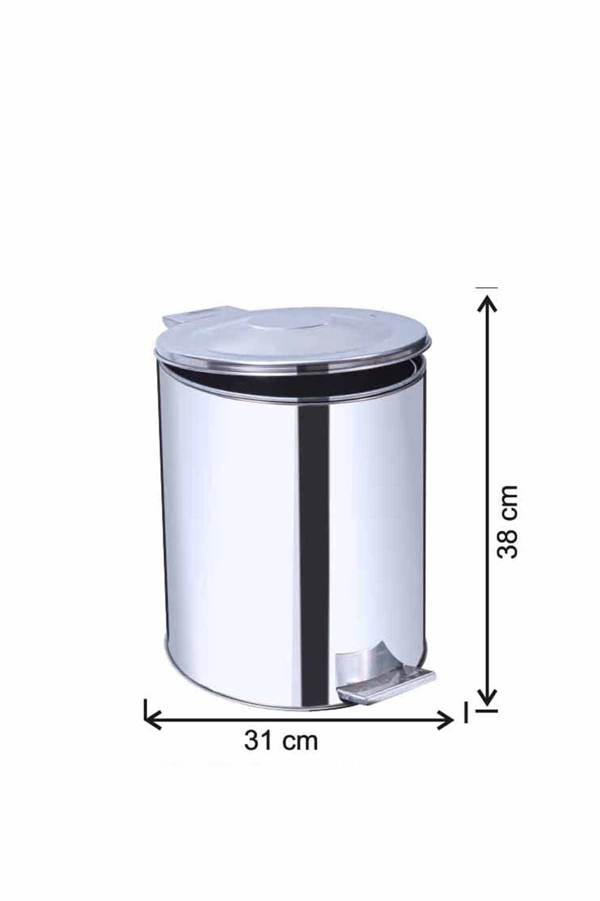 1052 25 Litre 430 S.S. Paslanmaz Çelik Endüstriyel Tip Galvaniz Metal İç Kovalı ve Metal Pedallı Su Sızdırmaz İç Hacimli Çöp Kovası