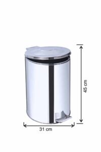 1053 35 Litre 430 S.S. Paslanmaz Çelik Endüstriyel Tip Galvaniz Metal İç Kovalı ve Metal Pedallı Su Sızdırmaz İç Hacimli Çöp Kovası