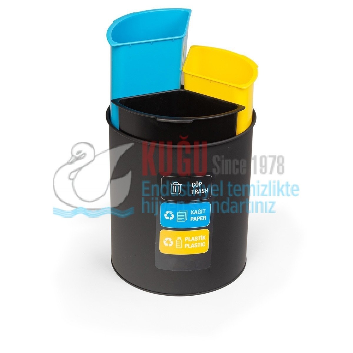 KGF-2030 Üç Bölmeli 3×4 12 Lt İç Hacimli Otel Tipi Geri Dönüşüm Çöp Kovası
