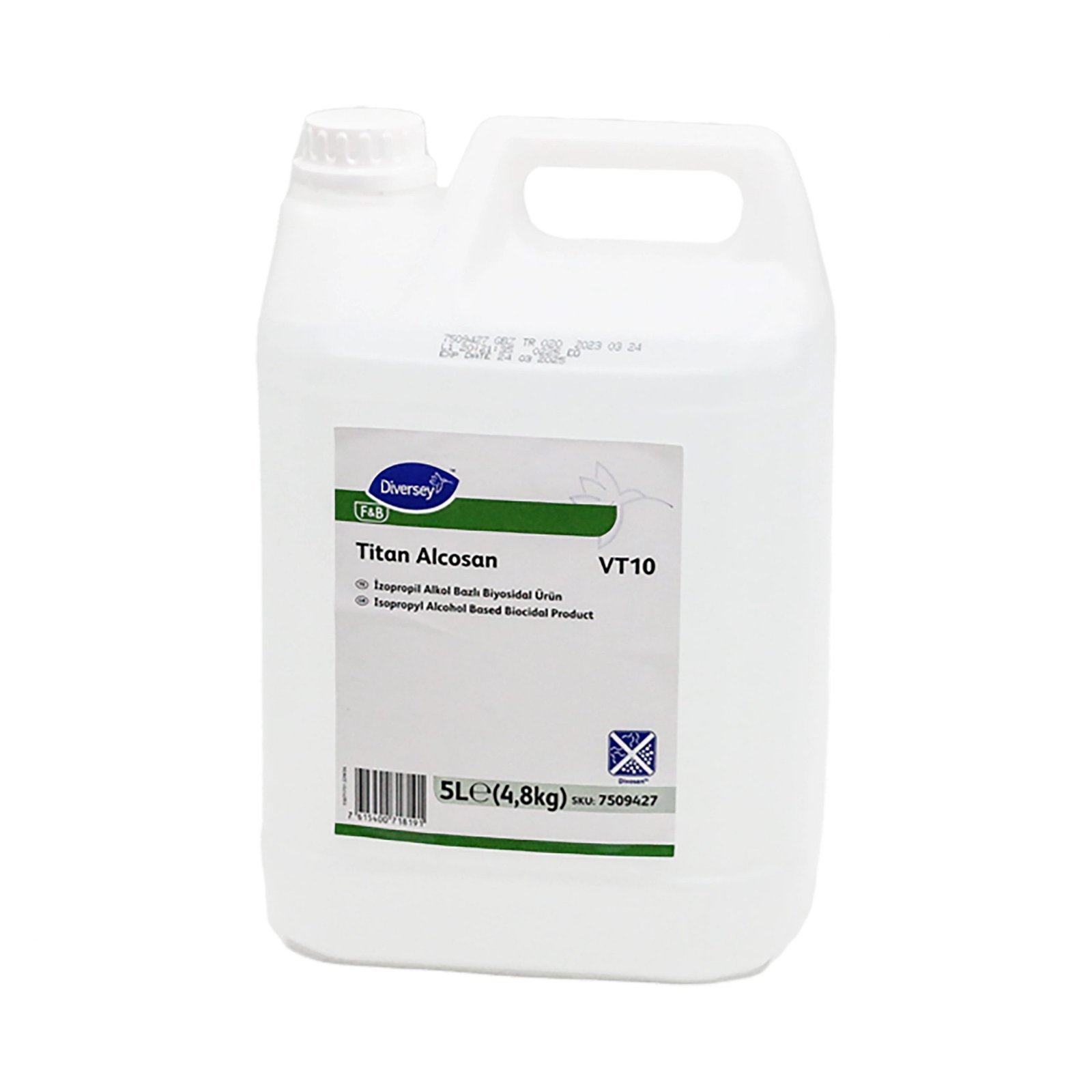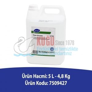 - Titan Alcosan VT10; yer, yüzey ve ortam dezenfektanı olarak kullanılmaktadır. Durulama gerektirmeyen direkt uygulamalar için formüle edilmiş alkol bazlı bir dezenfektandır. Ekolojik çevreci Diversey ürünü olan Titan Alcosan güvenli bir şekilde kullanılabilir.