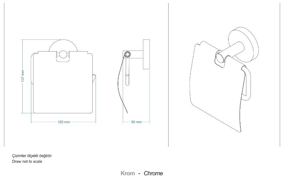 9253 304 S.S. Paslanmaz Çelik Parlak Polisaj Kapak Kapaklı Tuvalet Kağıtlık