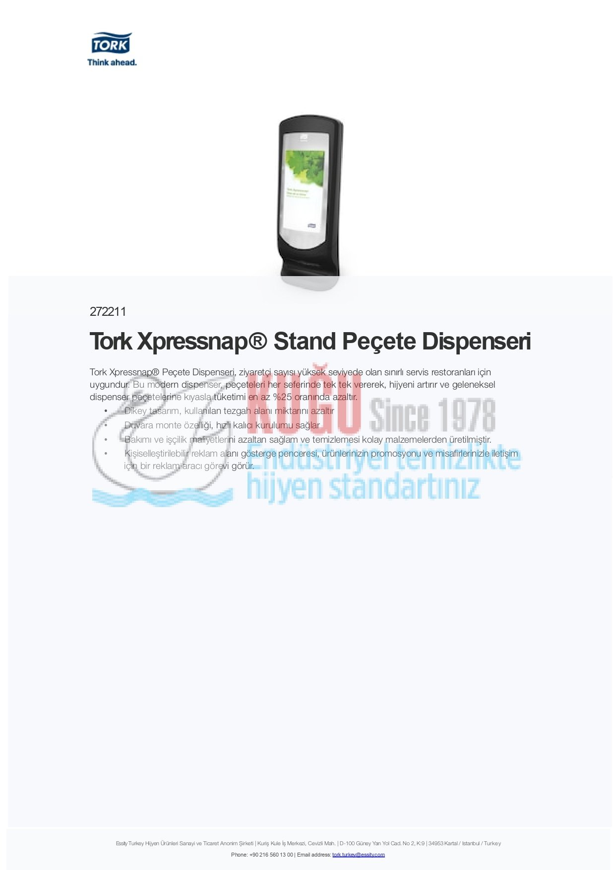 • Sistem: N4 – Tork Xpressnap® Napkin Dispenser System