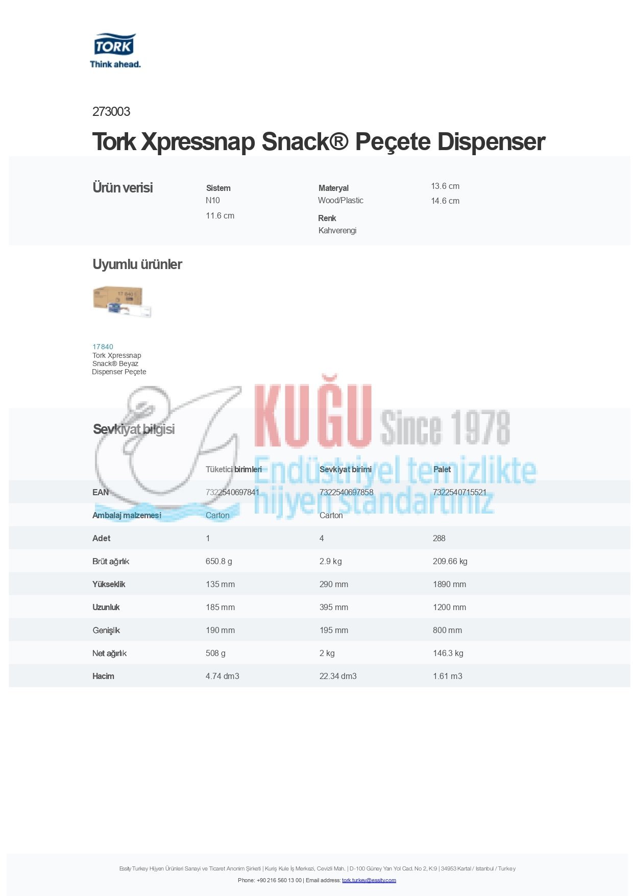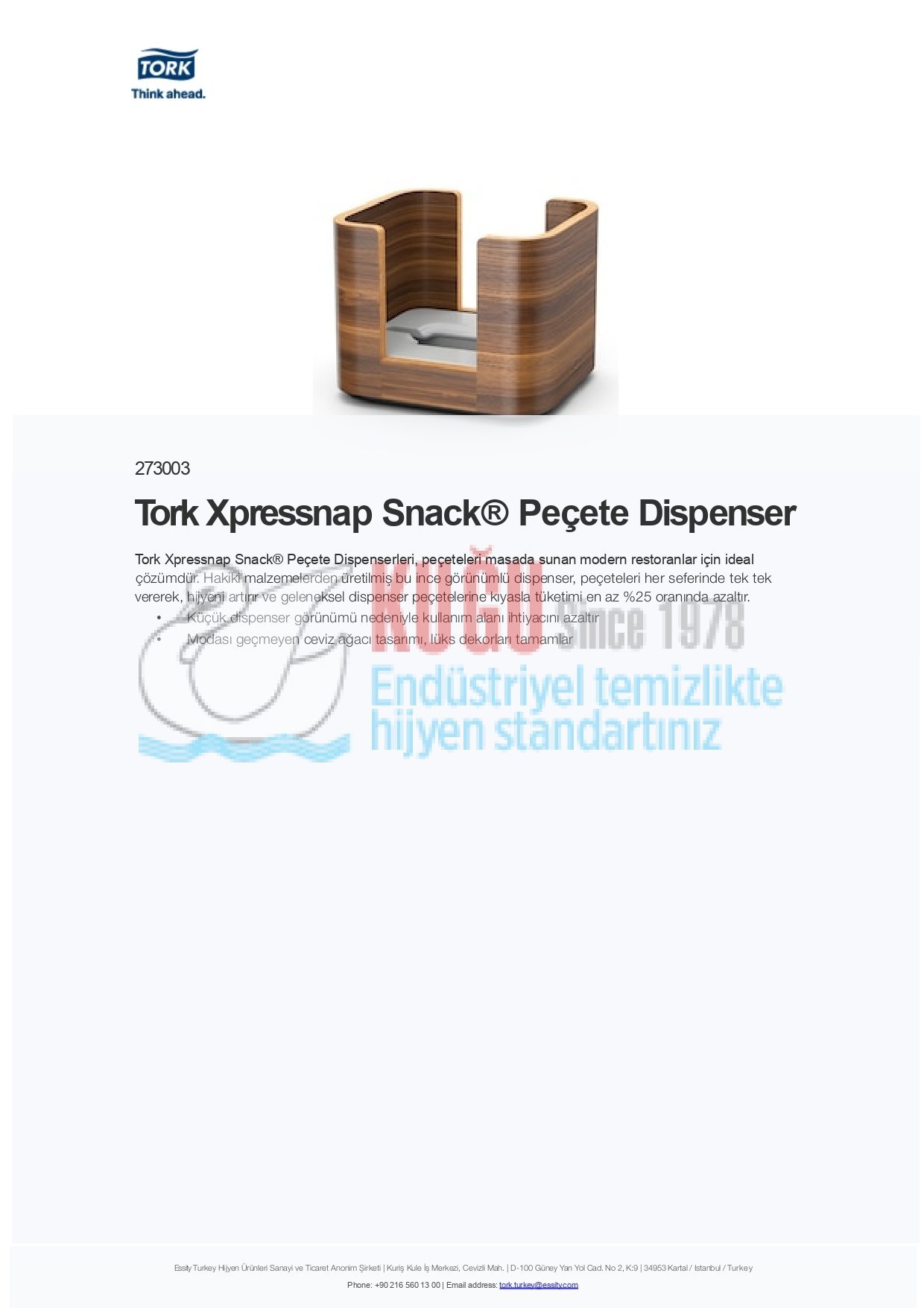 Tork, Kuğu Endüstriyel tarafından, önde gelen bir küresel kişisel bakım ve hijyen şirketi olan Essity’nin lisansı altında satılmaktadır. Kuğu Endüstriyel Türkiye’de ve ihracat ile Dünya’nın 27 ülkesine kadın hijyeni, inkontinans hijyeni, tüketici mendilleri ve profesyonel hijyen ürün kategorilerinde tüketici ürünleri üretir, pazarlar ve dağıtır. Daha fazla bilgi için www.kugu.com.tr.tr