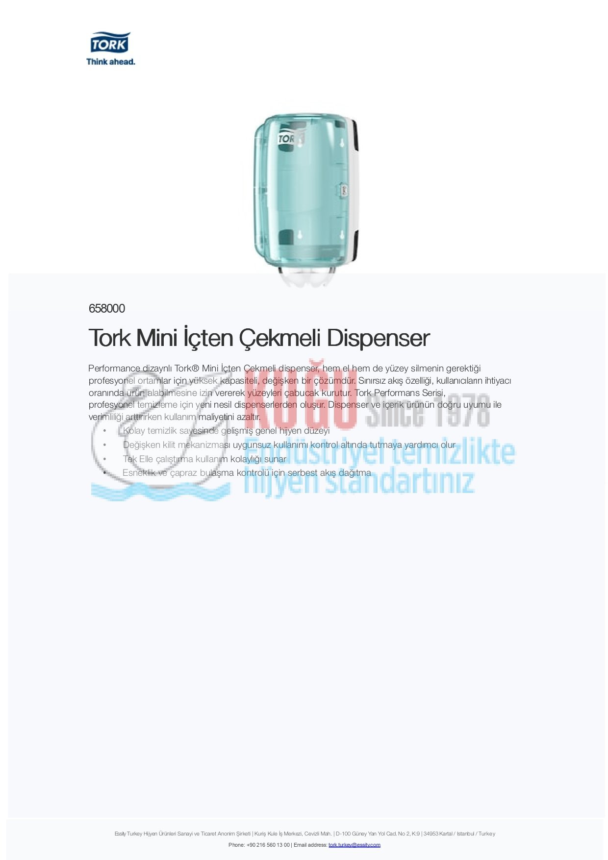 Performance dizaynlı Tork® Mini İçten Çekmeli dispenser, hem el hem de yüzey silmenin gerektiği profesyonel ortamlar için yüksek kapasiteli, değişken bir çözümdür. Sınırsız akış özelliği, kullanıcıların ihtiyacı oranında ürün alabilmesine izin vererek yüzeyleri çabucak kurutur. Tork Performans Serisi, profesyonel temizleme için yeni nesil dispenserlerden oluşur. Dispenser ve içerik ürünün doğru uyumu ile verimliliği arttırırken kullanım maliyetini azaltır.
