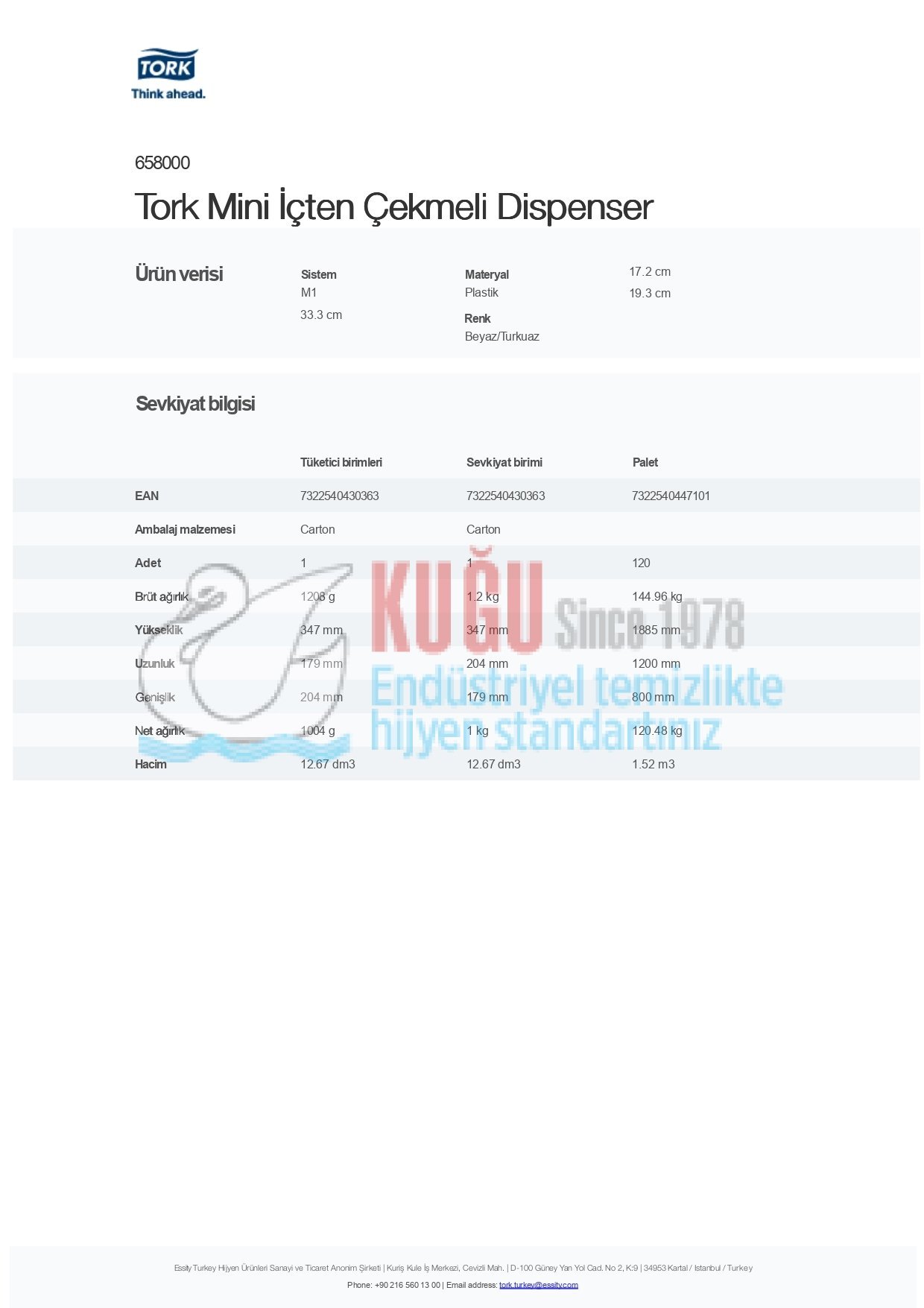 KT-658000 Tork Mini İçten Çekmeli Dispenser