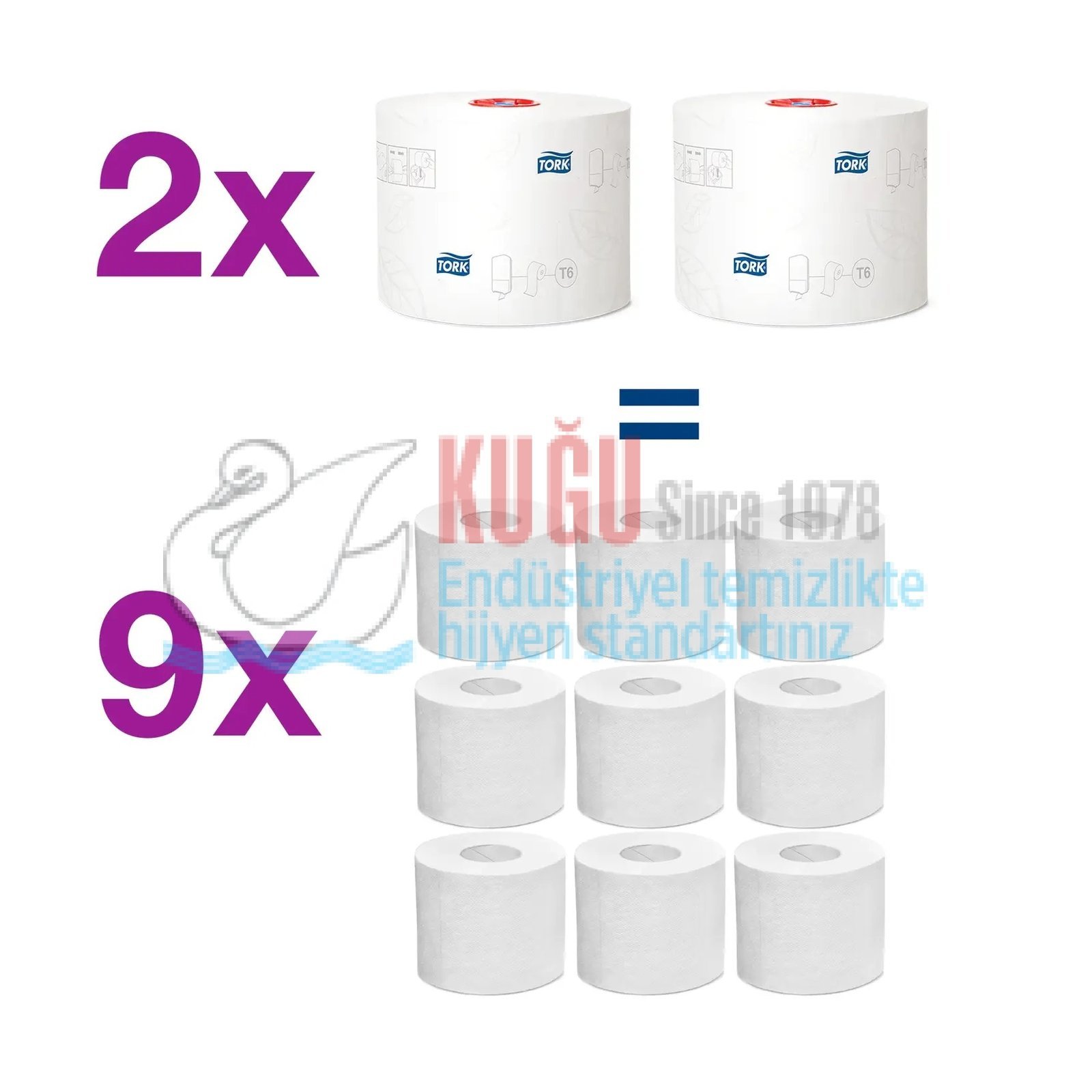 KT-127530 Tork Çift Rulo Orta Boy WC Tuvalet Kağıdı 2 Katlı Gelişmiş T6 Beyaz – (1 Rulo 100 Metre-Koli İçi 27 Rulo)